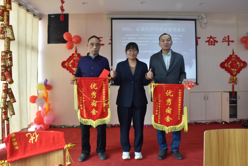 東莞市新望包裝機(jī)械有限公司2020年年度總結(jié)大會(huì)于2021年1月24日下午14:30在公司食堂隆重舉行。年終會(huì)議由行政部經(jīng)理張麗君主持。公司黨支部書記潘婉荷對(duì)黨支部成立5年以來的黨員活動(dòng)和黨建工作做了匯報(bào)和總結(jié)。公司運(yùn)營管理中心和技術(shù)創(chuàng)新服務(wù)中心兩套班子成員緊靠大會(huì)主題“征途漫漫,惟有奮斗”進(jìn)行總結(jié)與探討,盤點(diǎn)過往成績(jī)與不足,為公司2021年戰(zhàn)略規(guī)劃獻(xiàn)計(jì)獻(xiàn)策,常委班子成員都發(fā)表了熱情洋溢的講話。公司總經(jīng)理羅永輝做了《前程無坦途 唯有奮起爭(zhēng)》的年度工作報(bào)告。