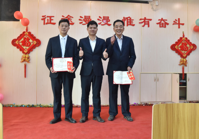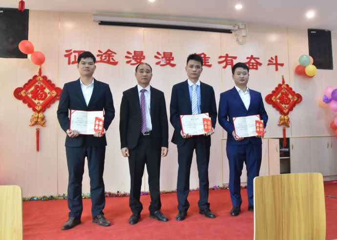 總助韋繼初為陽專、胡賽、羅曉明頒發(fā)優(yōu)秀管理獎(jiǎng)