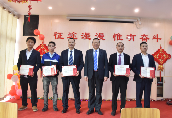 羅總為羅永新、陽羲、黃增照、韋繼初、許成勇頒發(fā)技術(shù)進(jìn)步獎(jiǎng)