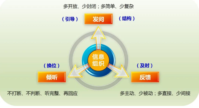 一次有效的溝通,通常需要四種技巧來保障:信息組織、發(fā)問、傾聽、反饋。其中,信息組織是基礎(chǔ),也是有效溝通的前提。為簡化問題,本文只針對(duì)一對(duì)一的溝通情境。