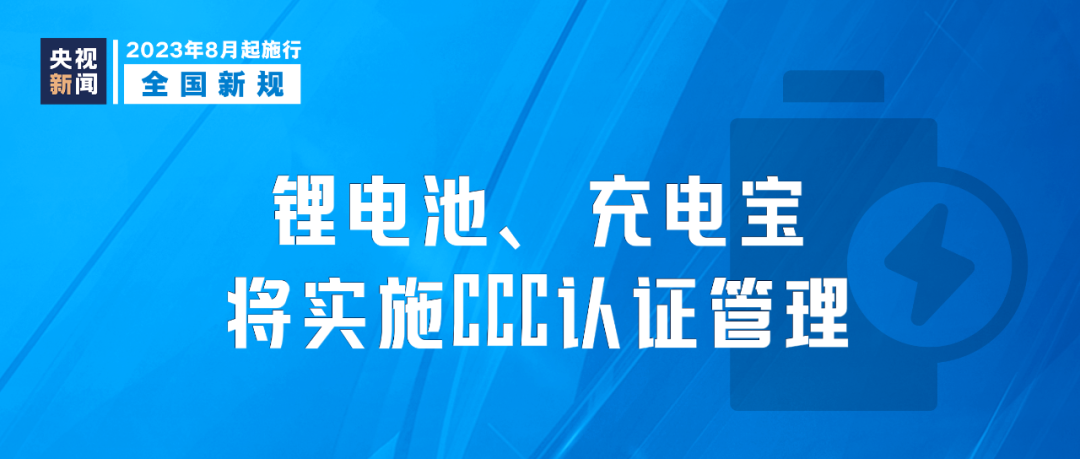 市場(chǎng)監(jiān)管總局發(fā)布公告,自2023年8月1日起,對(duì)鋰離子電池和電池組、移動(dòng)電源實(shí)施CCC認(rèn)證管理;自2024年8月1日起,未獲得CCC認(rèn)證證書(shū)和標(biāo)注認(rèn)證標(biāo)志的,不得出廠(chǎng)、銷(xiāo)售、進(jìn)口或者在其他經(jīng)營(yíng)活動(dòng)中使用。