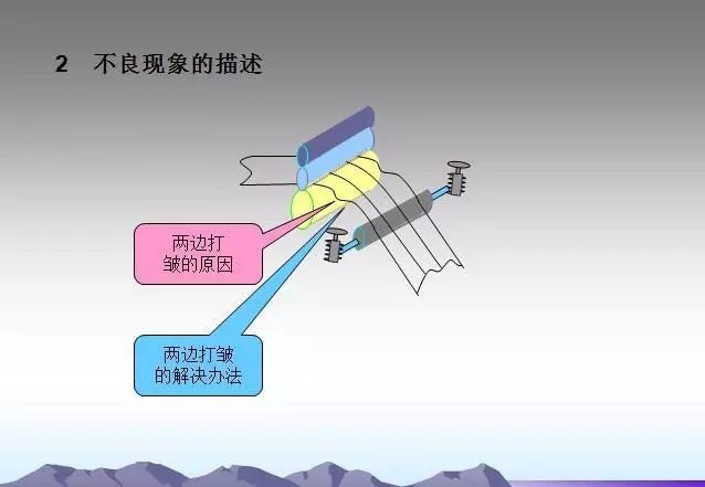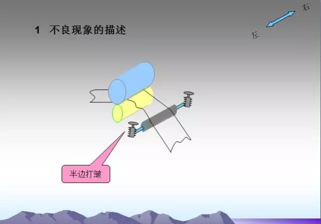 過輥之間平行度超差會(huì)造成箔帶打皺,須仔細(xì)檢查究竟是垂直投影面不平行還是水平面不平行,然后加以調(diào)整
